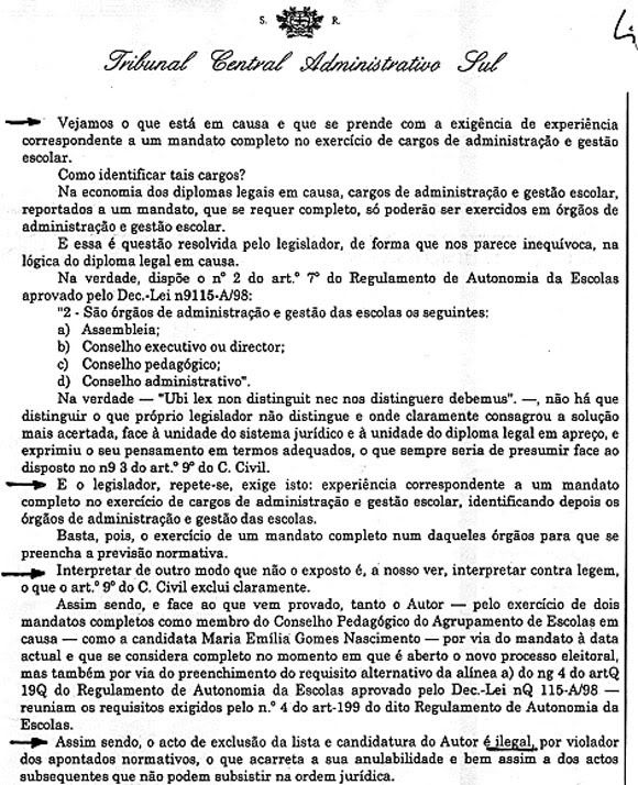 Enquanto Presidente do Conselho Directivo da minha Escola COLOCAREI SEMPRE EM CAUSA QUALQUER DESPACHO ARBITRÁRIO que me pareça colidir com o Espírito da Lei.